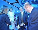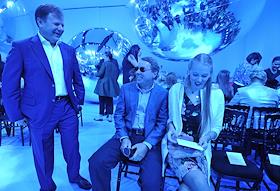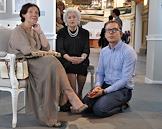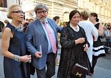 Слева направо: Основатель Московского дома фотографии, директор Мультимедиа Арт Музея Ольга Свиблова, совладелицы "Независимой газеты" Константин и Елена Ремчуковы перед началом показа осенне-зимней коллекции модного дома Christian Dior на Красной площади.
