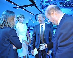 Генеральный директор Малого театра оперы и балета, председатель совета директоров компании JFC Владимир Кехман (второй слева) и оперная певица Елена Образцова (в центре) перед началом показа осенне-зимней коллекции модного дома Christian Dior на Красной площади.