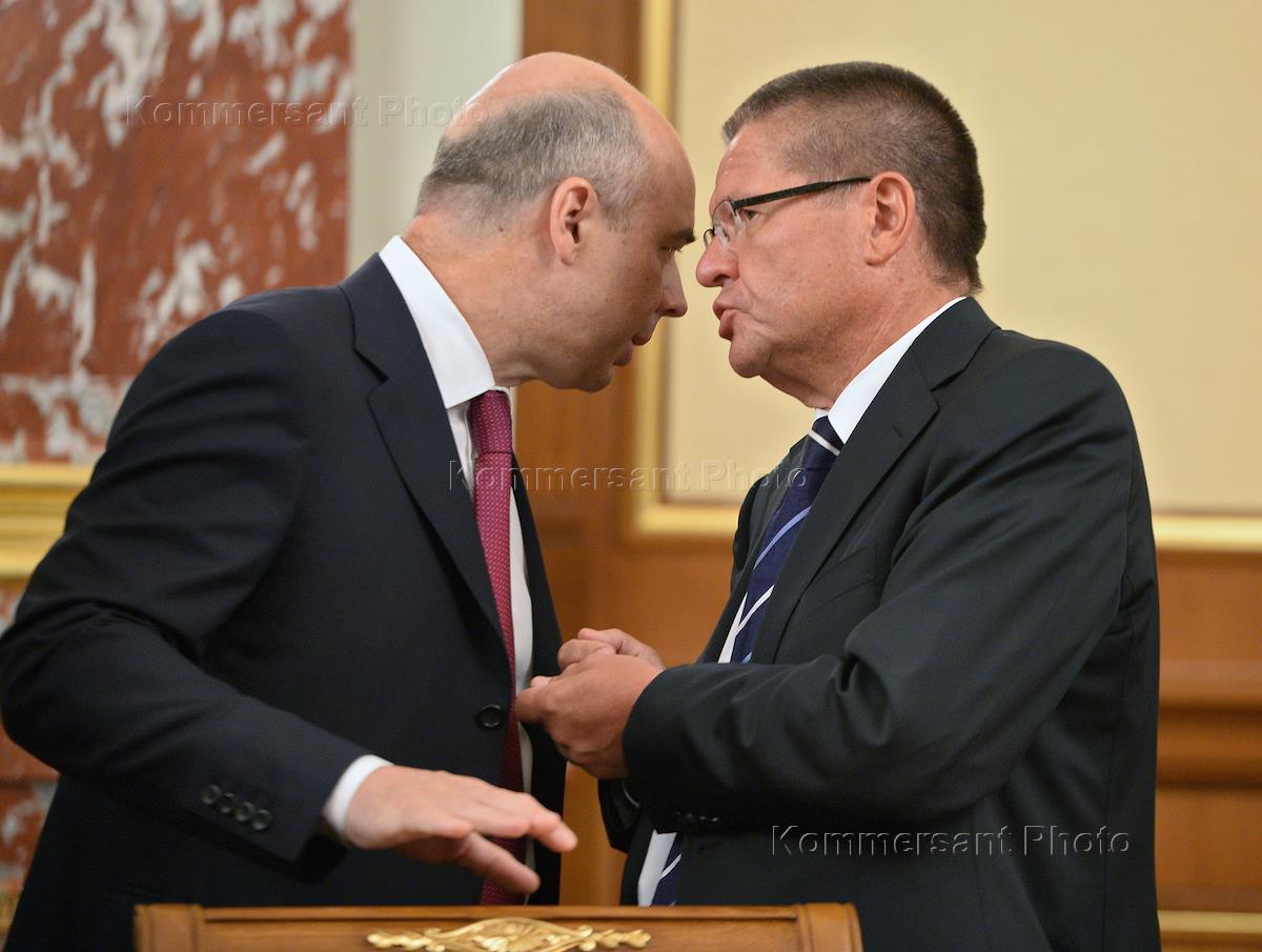Министр финансов России Антон Силуанов (слева) и министр экономического развития России Алексей Улюкаев (справа) перед началом заседания правительства России.