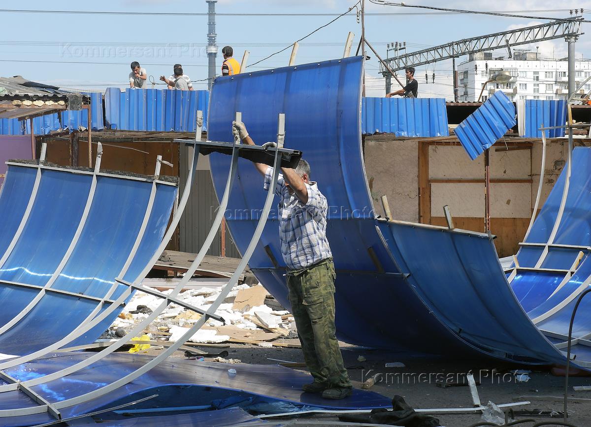 Снос Тимирязевского рынка. Рабочие во время погрузки.