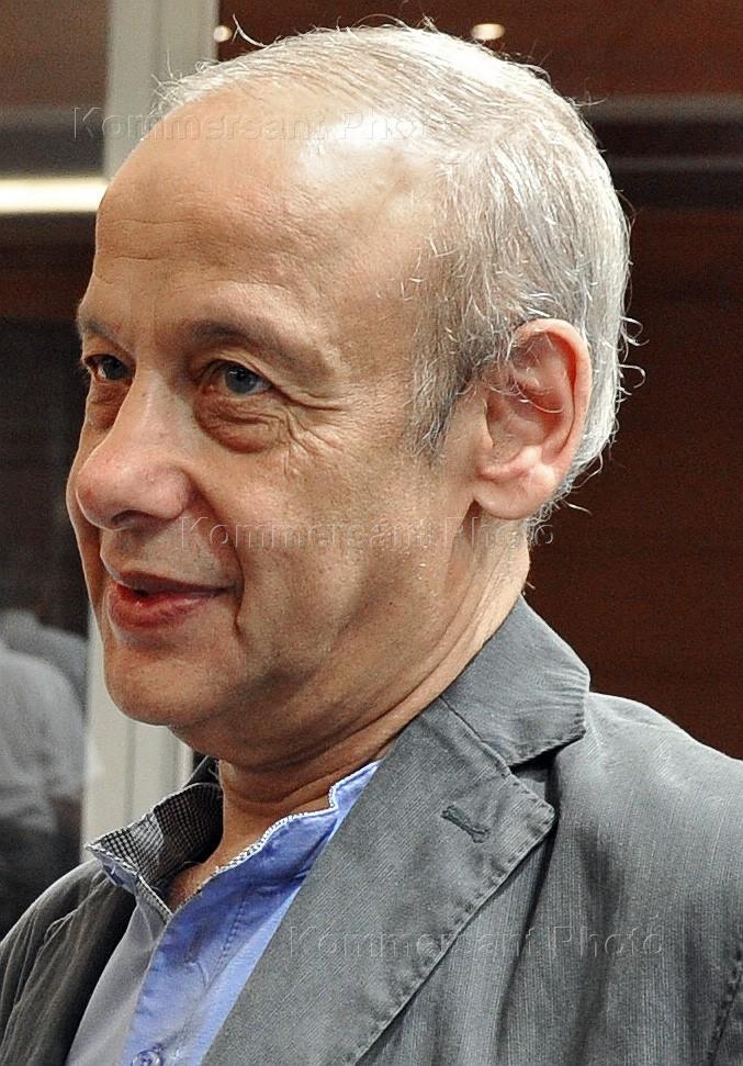 TV presenter Nikolai Svanidze (left) and director Yuli Gusman (right) before a meeting of the CGI. The meeting was devoted to discussion of the report "New trends in social and political attitudes of the Russian population" and took place in "EVENT-Hall.