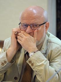 Генеральный директор ЗАО "Редакция газеты "Московский комсомолец", главный редактор газеты "Московский комсомолец", председатель Союза журналистов Москвы Павел Гусев во время слушаний на тему: "Перспективы регулирования правоотношений в сети Интернет в Российской Федерации". Слушания прошли в Общественной палате России.