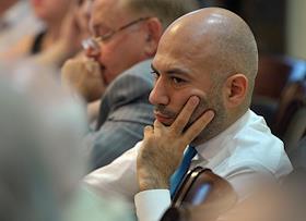 Председатель Комиссии АЮР по спортивному праву Сергей Алексеев во время слушаний на тему: "Перспективы регулирования правоотношений в сети Интернет в Российской Федерации". Слушания прошли в Общественной палате России.