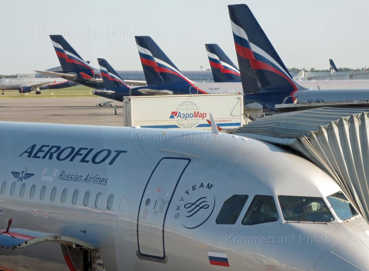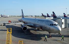 Виды аэропорта "Шереметьево". Самолет компании "Аэрофлот" у терминала D.