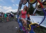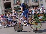Спортивно-развлекательный праздник Moscow City Games в прошел на территории спорткомплекса "Лужники". Игра в гольф на велосипеде.