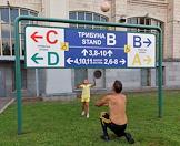 Спортивно-развлекательный праздник Moscow City Games в прошел на территории спорткомплекса "Лужники". Игра в гольф на велосипеде.