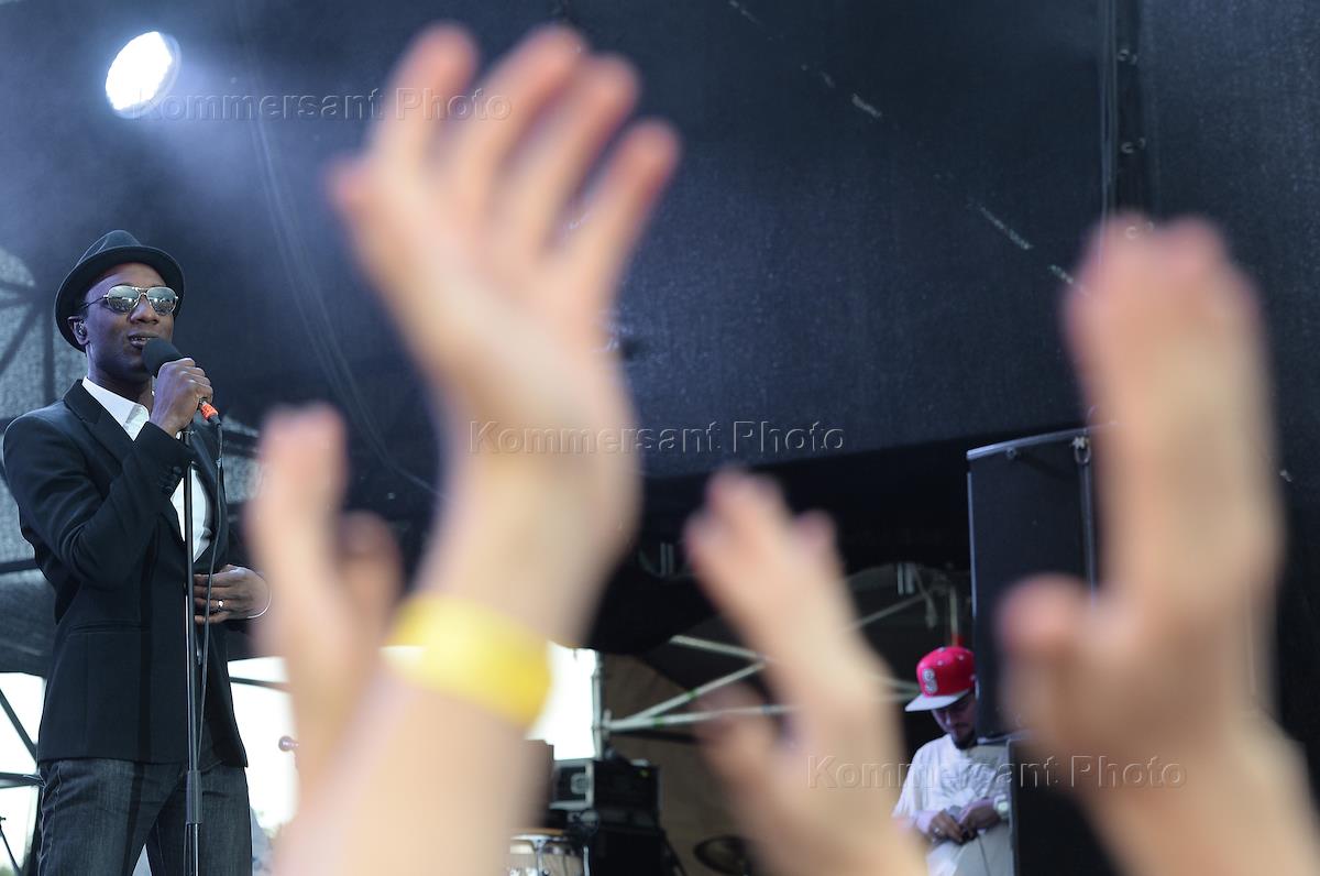 X музыкальный фестиваль "Пикник "Афиши" прошел на территории музея-заповедника "Коломенское". Исполнитель Aloe Blacc во время выступления на фестивале.