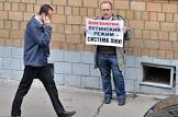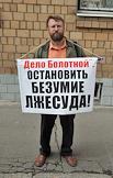 Участник пикета в защиту обвиняемого по делу о массовых беспорядках на Болотной площади 6 мая 2012 года Михаила Косенко у здания Замоскворецком суде.