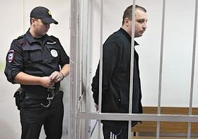 Обвиняемый по делу о массовых беспорядках на Болотной площади 6 мая 2012 года Михаил Косенко (справа) во время рассмотрения дела в Замоскворецком суде.