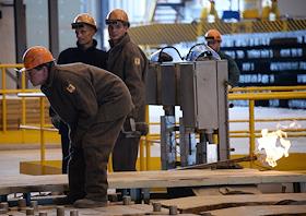 Рабочие в цехе нового металлургического завода "НЛМК-Калуга" по производству стали и сортового проката строительного назначения.