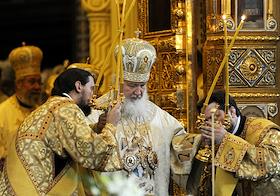 Патриарх Московский и всея Руси Кирилл на Божественной литургии в храме Христа Спасителя в честь 1025-летия Крещения Руси.