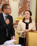 Заместители председателя правительства России Дмитрий Козак (слева) и Ольга Голодец (справа) перед началом заседания правительства России.