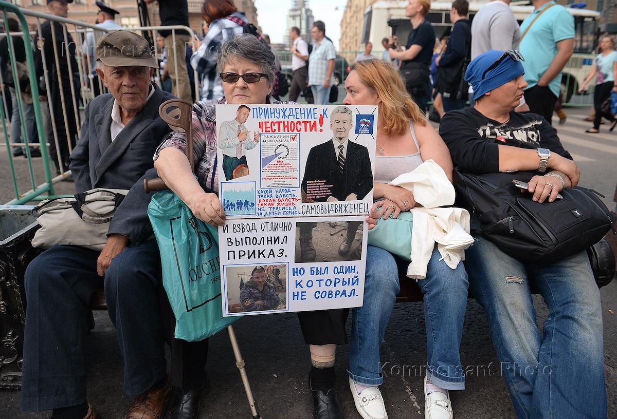 Участница акции "Стратегии-31" в защиту свободы собраний. Акция прошла на Триумфальной площади.