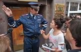 Сотрудник Дорожно-постовой службы (ДПС) во время несения службы на улице города.