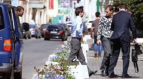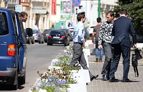 Генеральный директор ОАО "Тверьэнергосбыт" Павел Поляк (в центре) перед допросом в Следственном комитете при МВД России.
