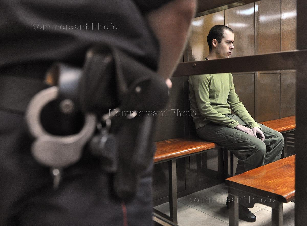 Обвиняемый Дмитрий Виноградов, застреливший шестерых сослуживцев, во время заседания Московского городского суда.