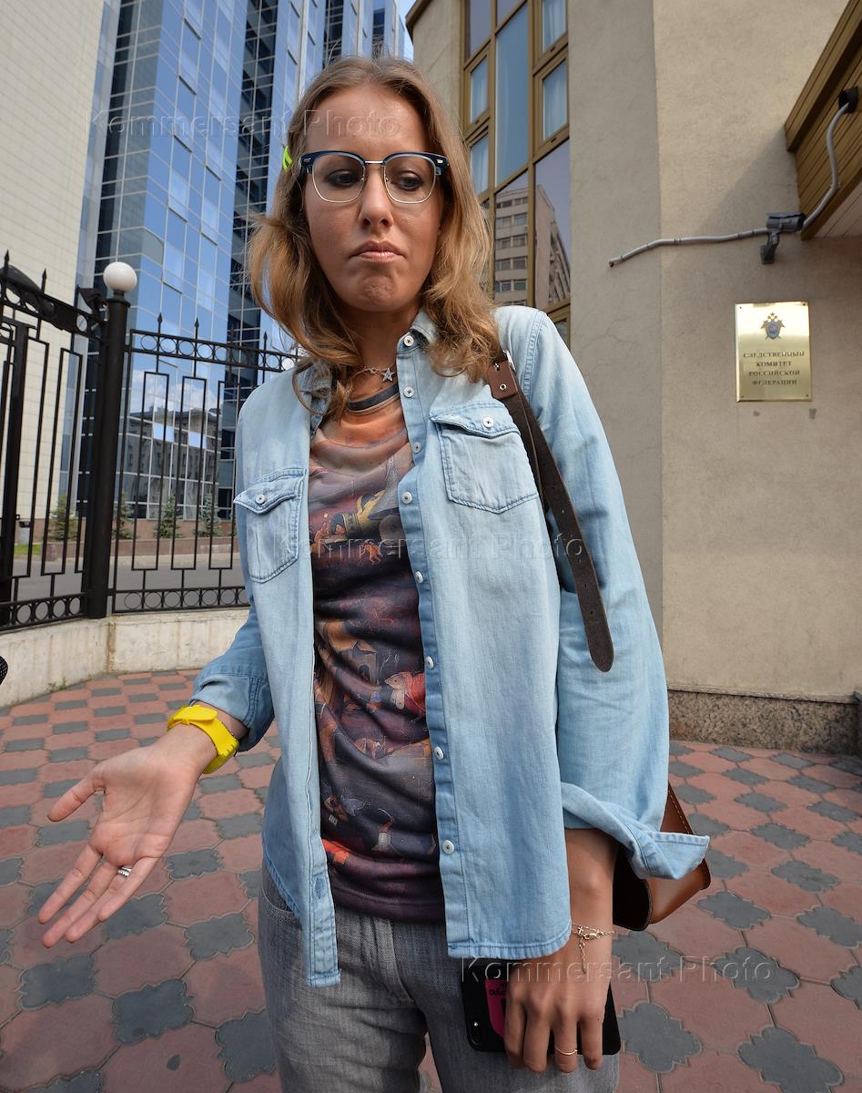 Телеведущая Ксения Собчак перед допросом по делу об оскорблении депутата Государственной думы России Елены Мизулиной. Допрос прошел в Следственном комитете России.