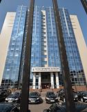 Сотрудник правоохранительных органов у здания Следственного комитета России.