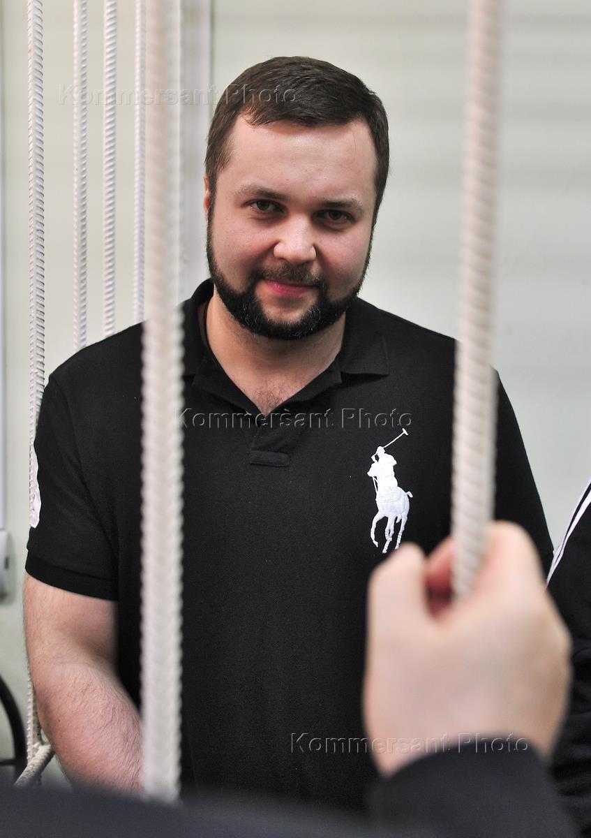 Бывший сотрудник МВД Максим Каганский, обвиняемые в попытке крупного мошенничества, во время заседания Хорошевского районного суда.