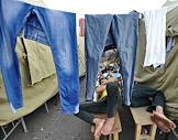 Задержанные мигранты в палаточном лагере в районе Гольяново.