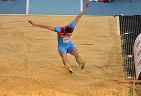 XIV Чемпионат мира по легкой атлетике на стадиноне "Лужники". День седьмой. Российский спортсмен Александр Меньков во время финальных соревнований по прыжкам в длину среди мужчин.