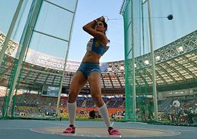 XIV Чемпионат мира по легкой атлетике на стадионе "Лужники". День седьмой. Российская спортсменка Татьяна Лысенко в соревнованиях по метанию молота среди женщин.