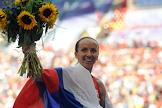 Церемония закрытия XIV Чемпионата мира по легкой атлетике. Россиянка Светлана Школина, завоевавшая золотую медаль в соревнованиях в прыжках в высоту среди женщин во время церемонии награждения на стадионе "Лужники".