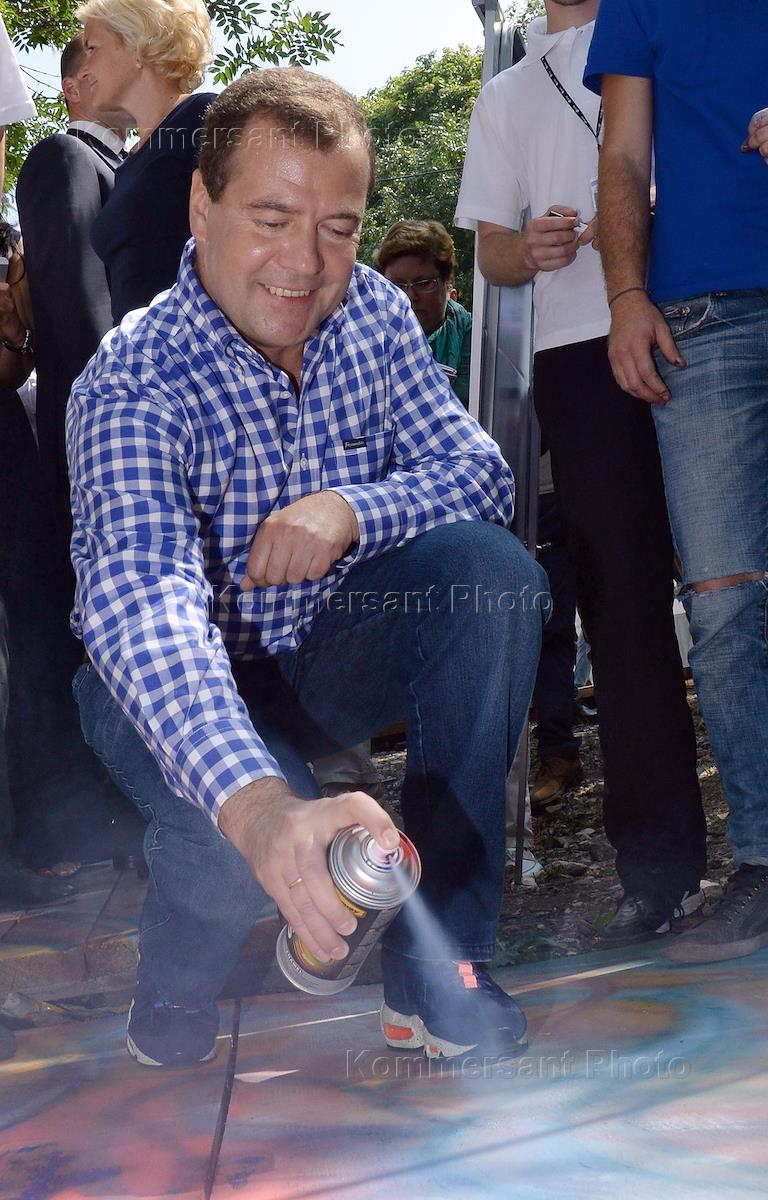 Russian Prime Minister Dmitry Medvedev during a meeting with members of the North Caucasian Youth Forum "Mashuk-2013" in Pyatigorsk.