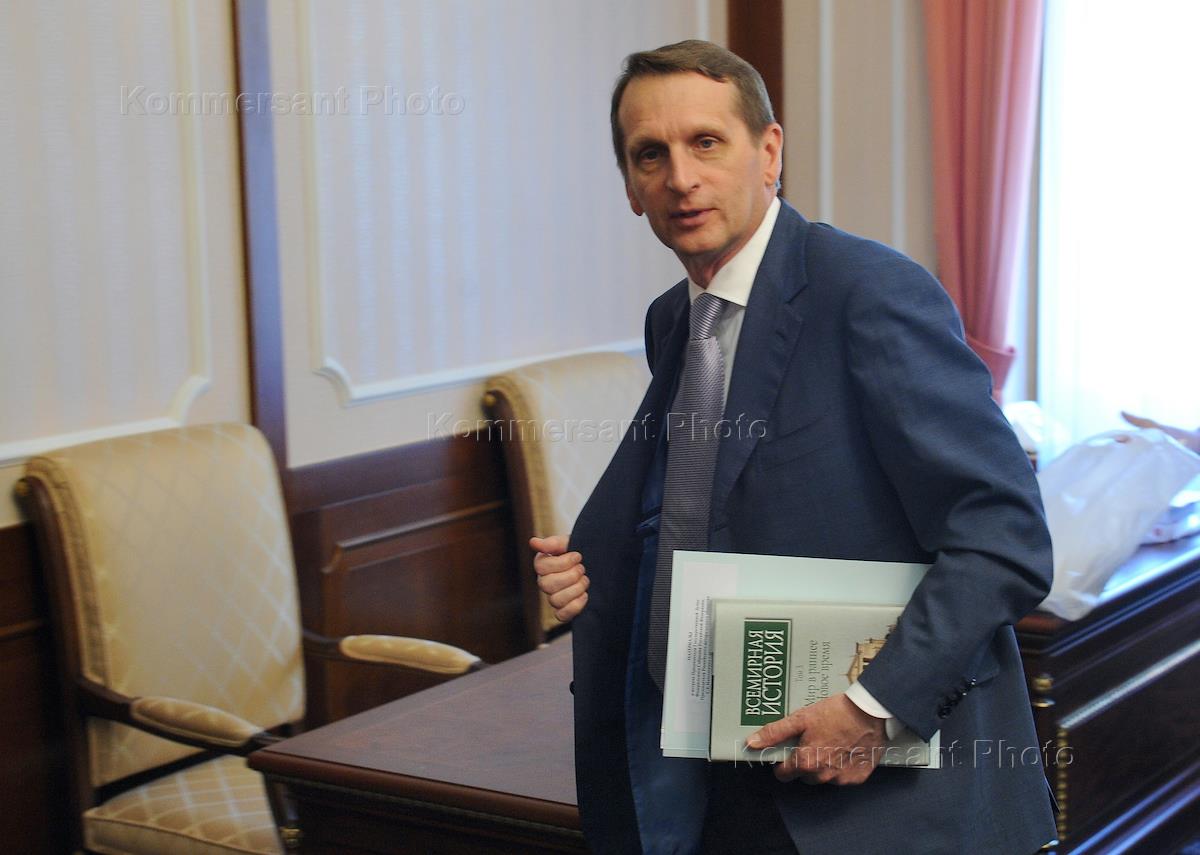Председатель Государственной думы (ГД) России, председатель Российского исторического общества Сергей Нарышкин во время встречи с историками и писателями в Доме приемов ГД России в Серебряном бору .