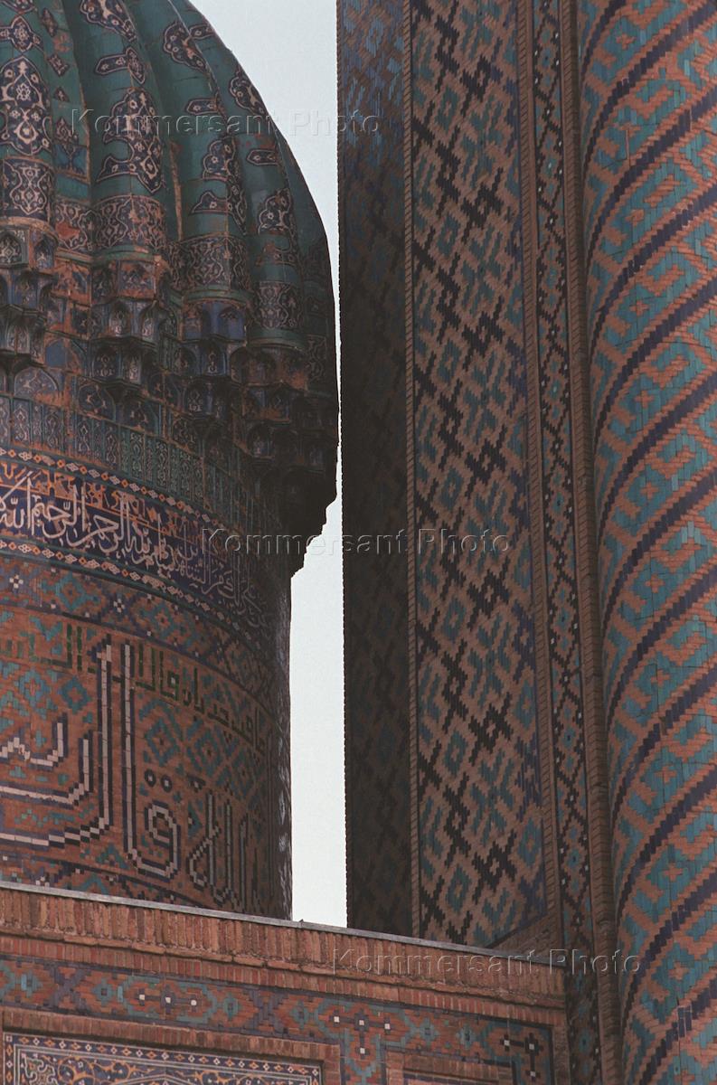 Одна из башен здания Медресе на центральной площади города Самарканда.