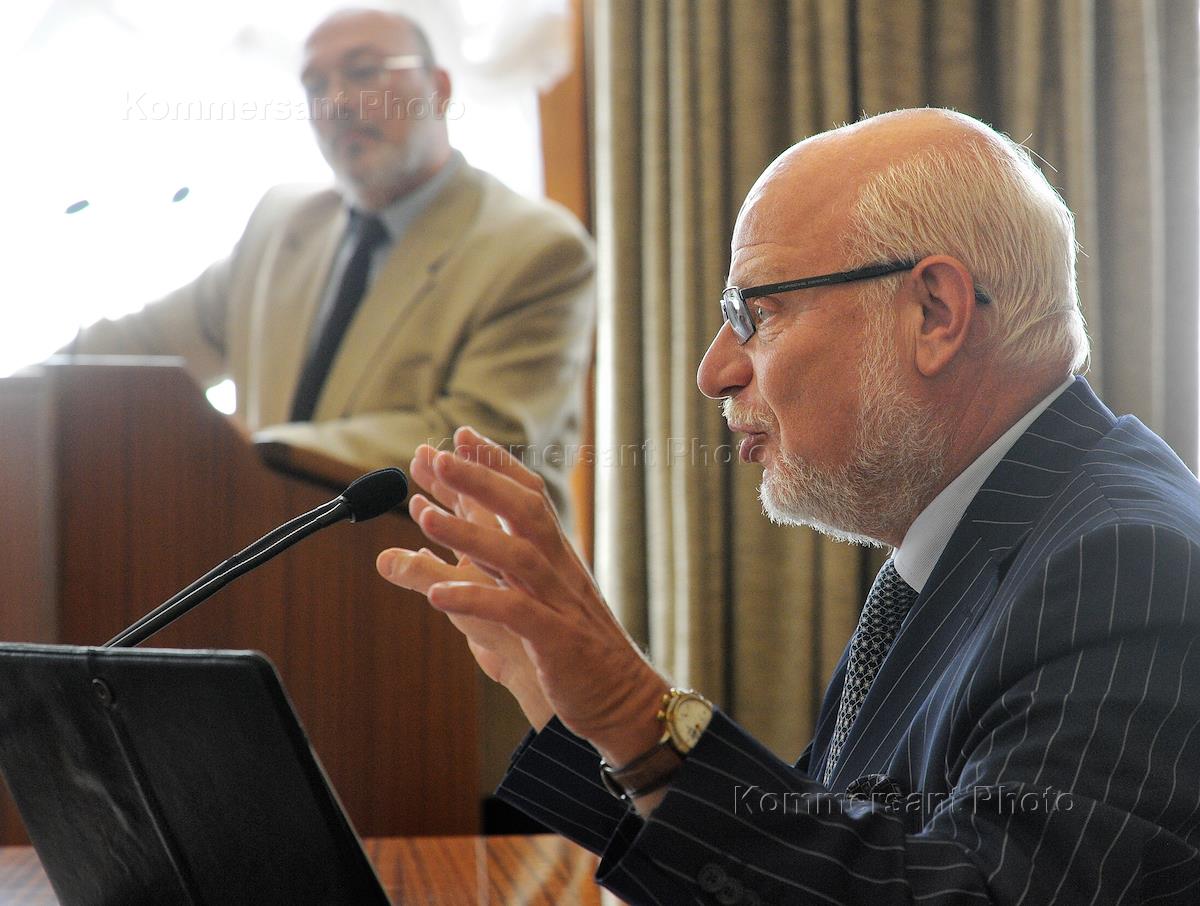 From left to right: Chairman of the Presidium of the Council on Foreign and Defense Policy Sergei Karaganov and chairman of the Institute of Contemporary Development (INSOR) Igor Jurgens at the plenary session of the Council under the Russian President on the development of civil society and human rights. The meeting was held in the building of the Russian Presidential Administration.
