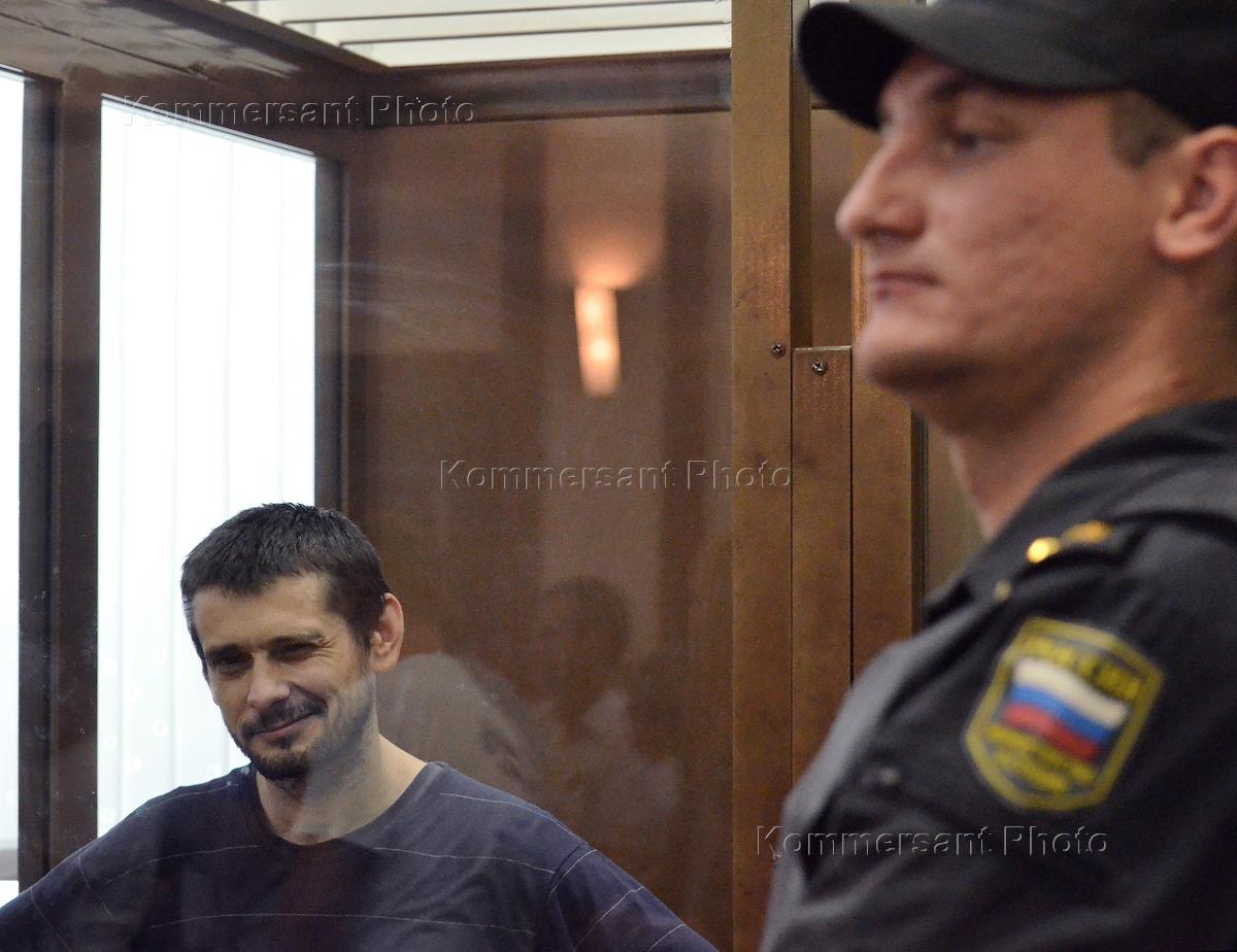 Accused in the murder of six people, "Belgorod shooter" Sergei Pomazun (left) before the last meeting of the court.