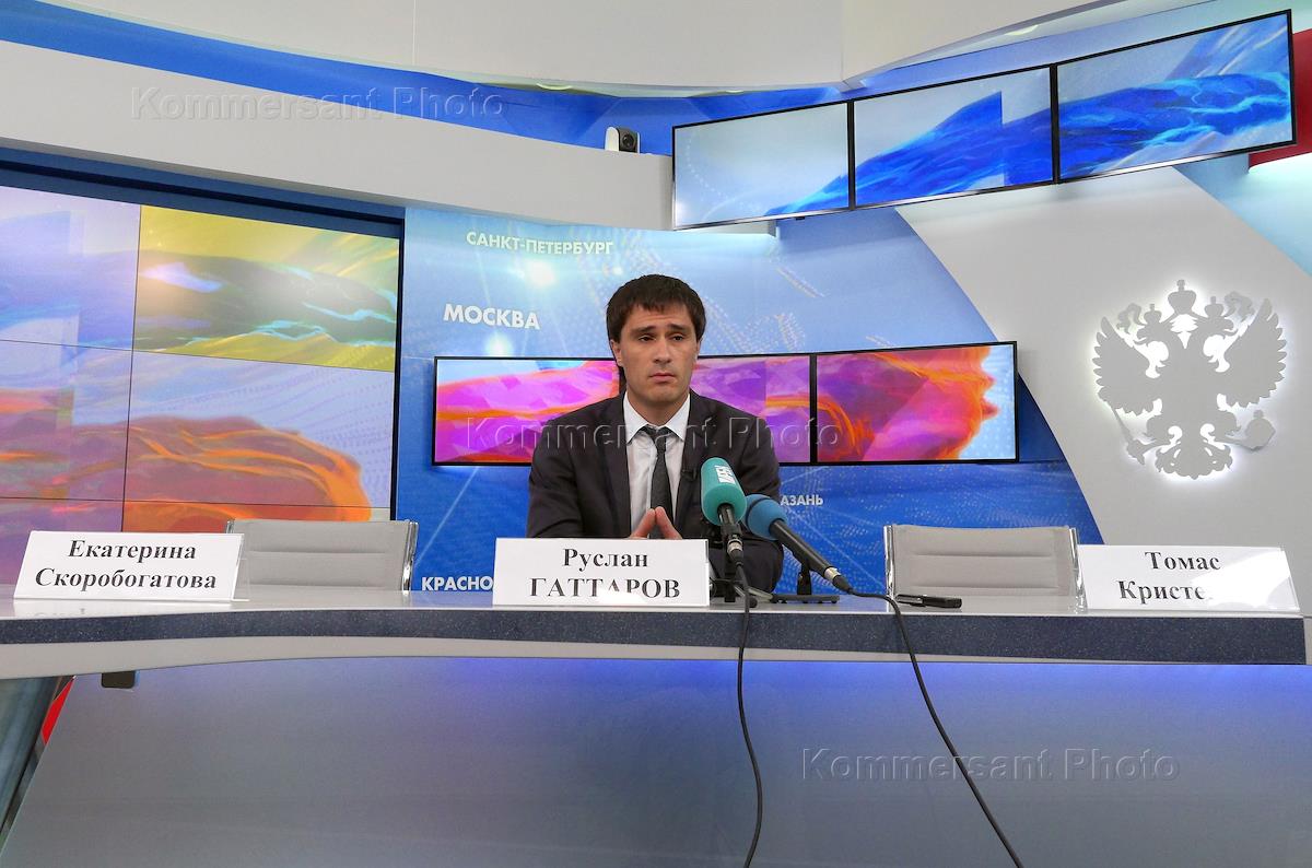 Член комитета Совета Федерации (СФ) России по науке, образованию, культуре и информационной политике Руслан Гаттаров во время встречи с руководством социальной сети Facebook Inc Томасом Кристенсеном. Встреча прошла в СФ России.