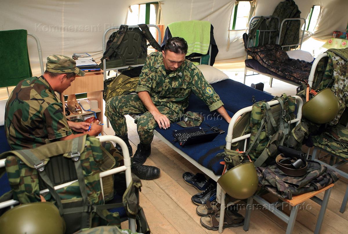 Лагерь миротворческих сил России на территории Абхазии. Военнослужащие во время дежурства.