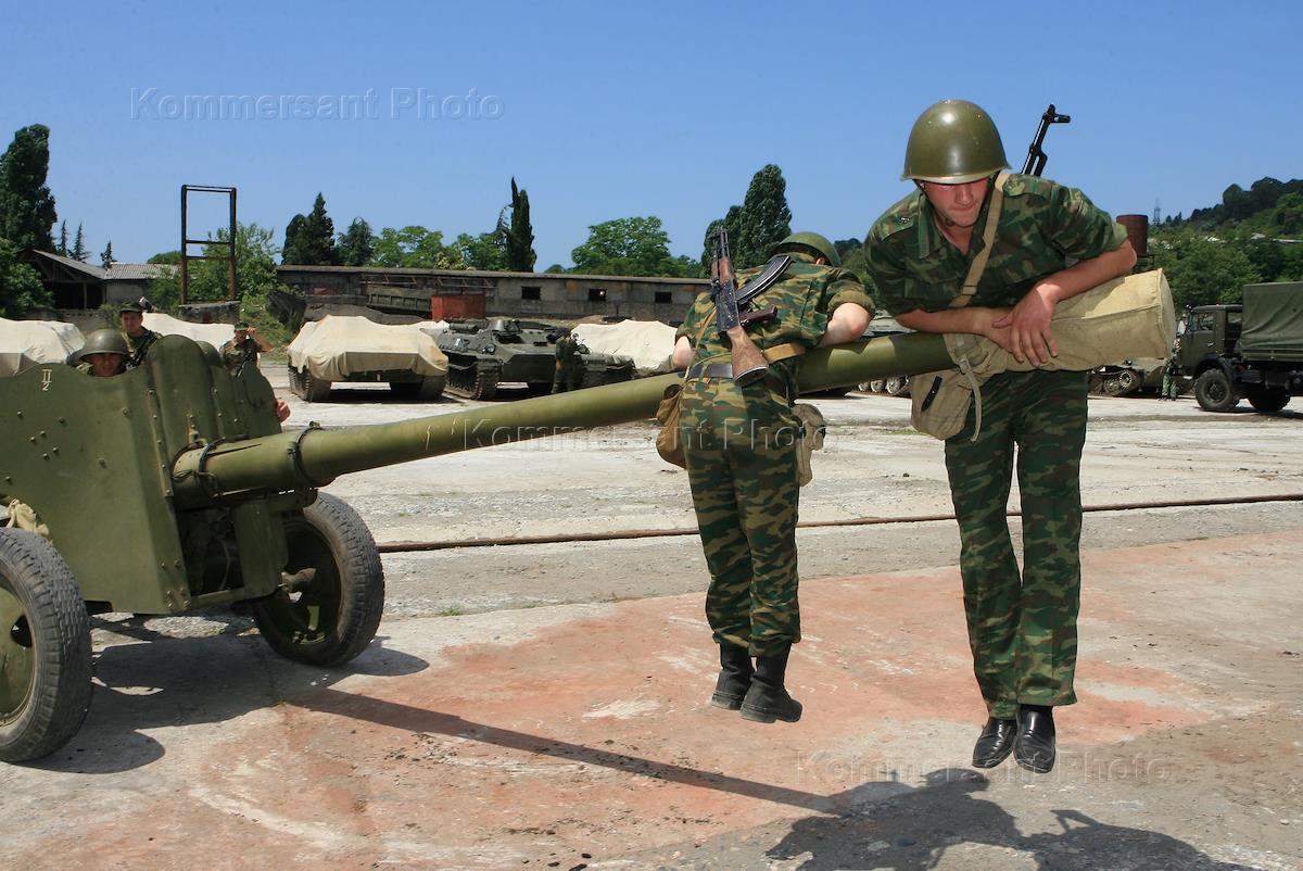 Лагерь миротворческих сил России на территории Абхазии. Военнослужащие во время дежурства.