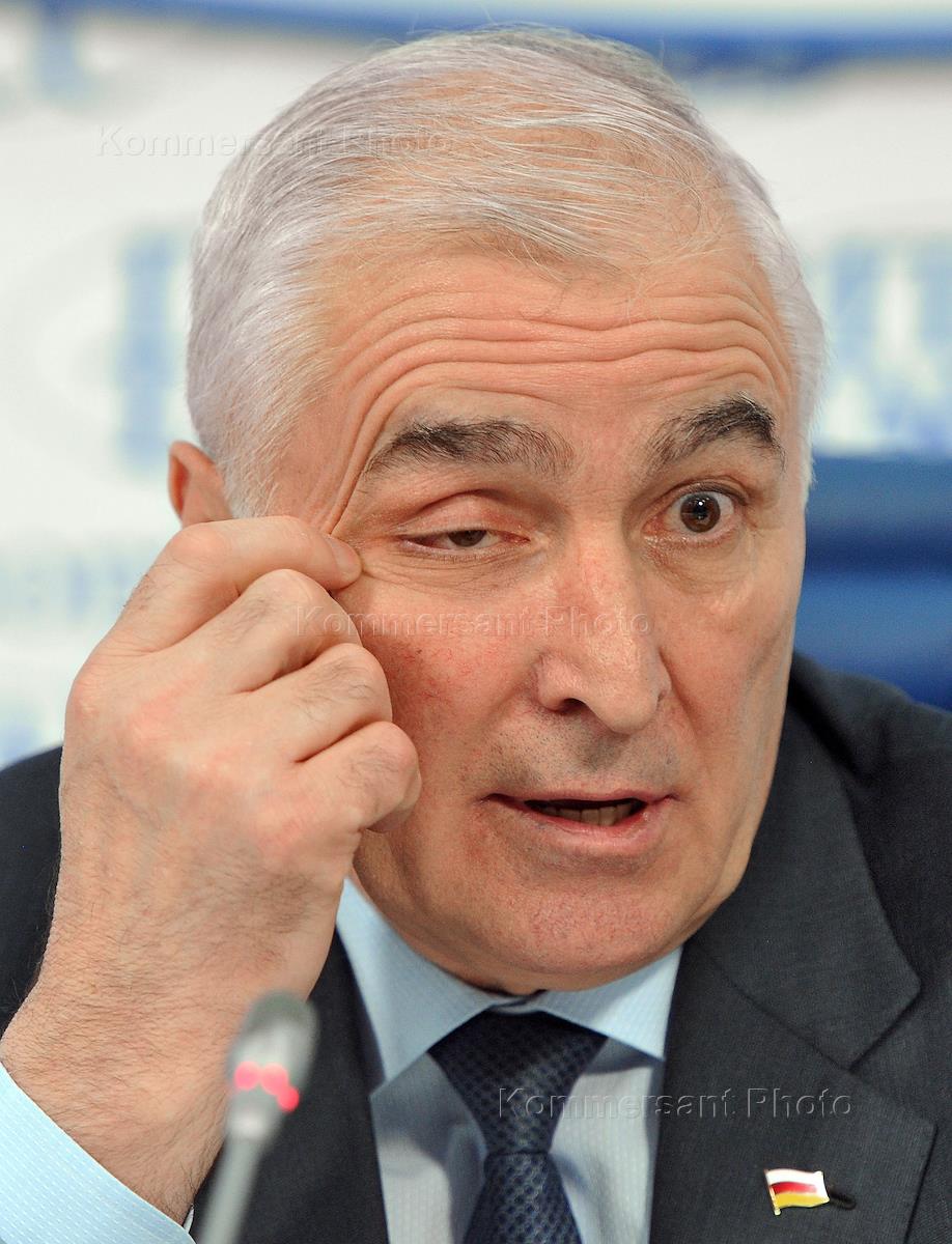 Президент Южной Осетии Леонид Тибилов, во время пресс-конференции, посвященной пятилетней годовщине признания Россией независимости Южной Осетии. Пресс-конференции прошла в пресс-центре ИТАР-ТАСС.