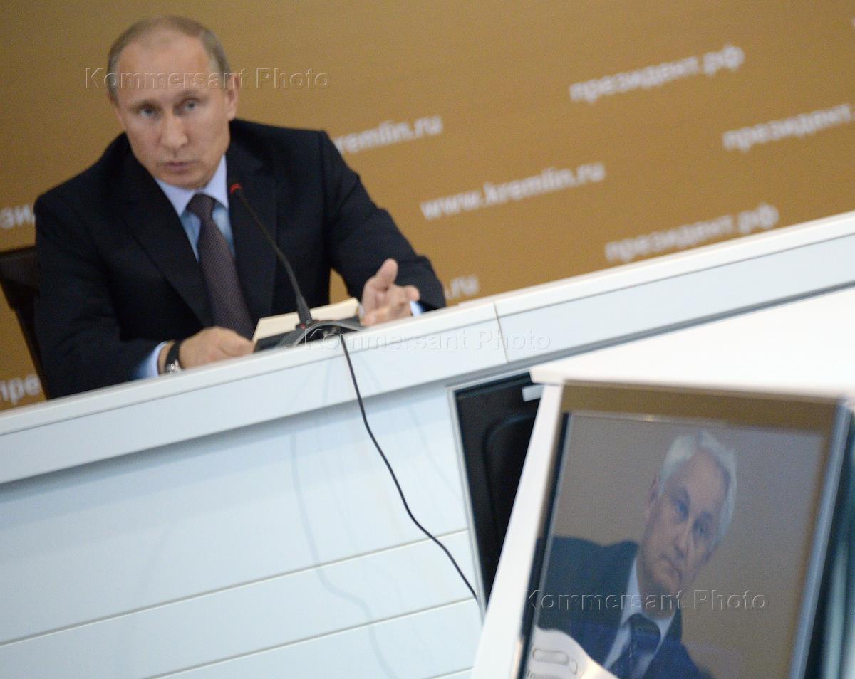 Russian President Vladimir Putin (center) before the Commission under the Russian President on strategy development of fuel and energy sector and environmental safety.