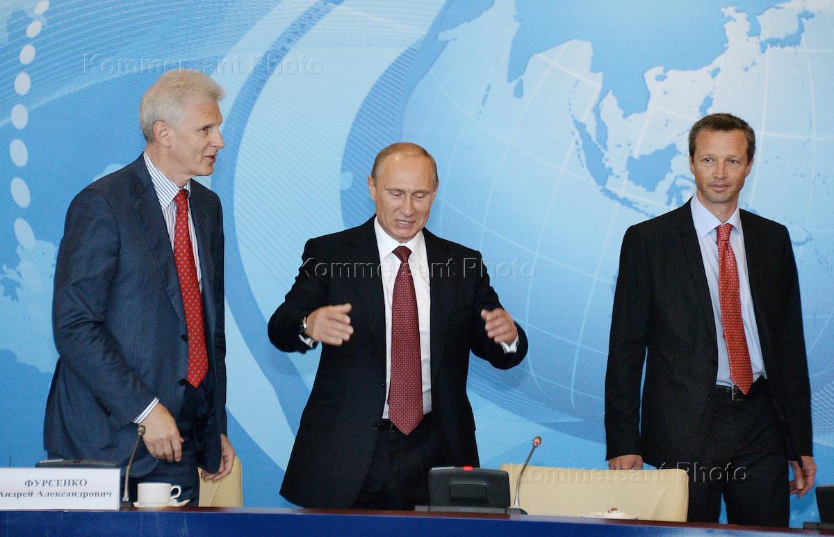 Owner of the holding "Basic Element" Oleg Deripaska (right) during the Commission under the Russian President on strategy development of fuel and energy sector and environmental safety.