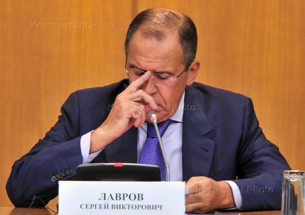 Russian Foreign Minister Sergei Lavrov during a press conference on the subject of chemical weapons in Syria and the situation surrounding the CAP. Press conference was held in the Foreign Ministry's press center.