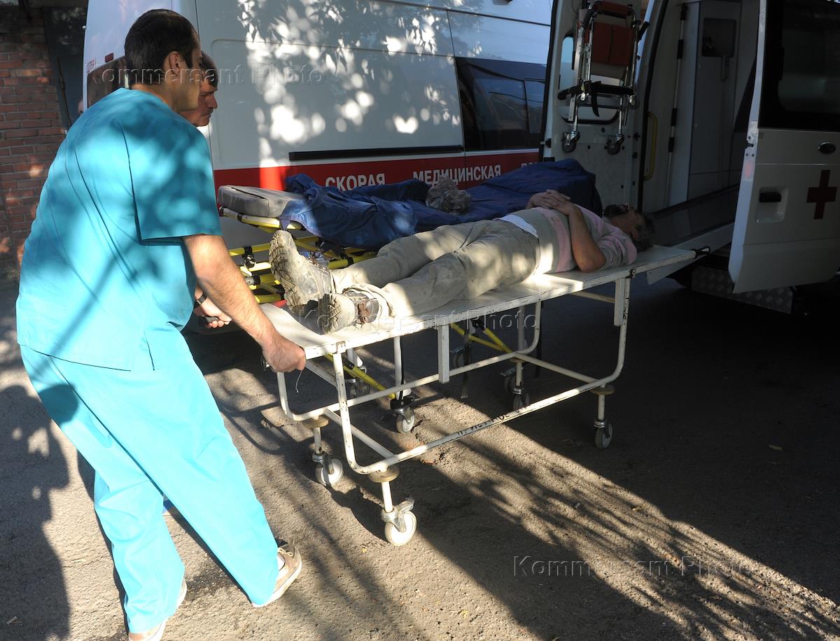 Приемное отделение городской инфекционной больницы имени Боткина. Оказаниея медицинской помощи строителям нового терминала аэропорта "Пулково", отравившихся во время обеда.