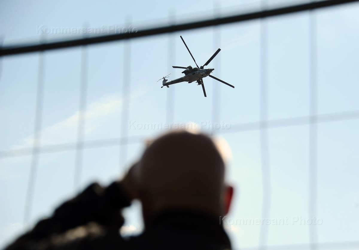 Работа XI Международного авиационно-космического салона МАКС-2013 на территории ФГУП "ЛИИ имени М.М.Громова". Демонстрационный полет вертолета.