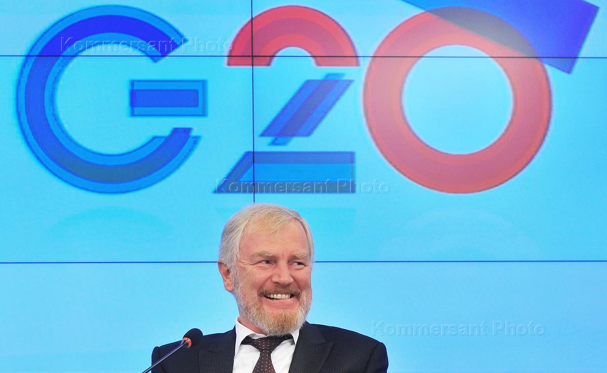 Deputy Finance Minister Sergei Storchak during the presentation of the St. Petersburg report on the implementation of commitments G20 in the field of development. Press conference was held in the RIA "Novosti".