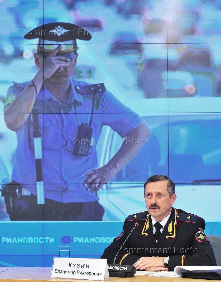 Deputy Head of the Main Division of Highway Traffic Safety Russian Ministry of Internal Affairs, Police Major General Vladimir Kuzin during the media press conference on the topic: "Changes in the Administrative Code and higher fines for traffic violations from September 1, 2013". Press conference was held in the RIA "Novosti".