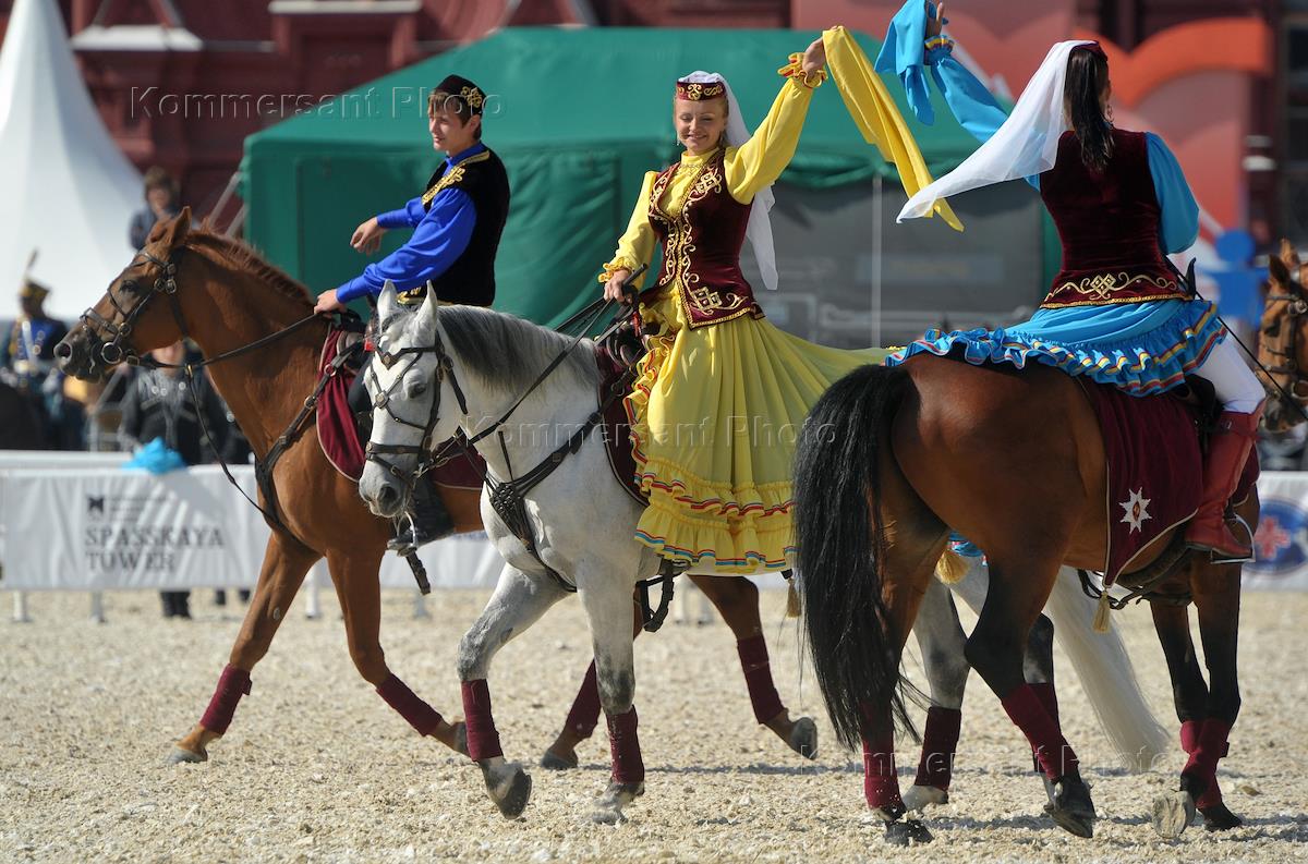 International Military Music Festival "Spasskaya Tower". Open Day Kremlin Riding School in the Tainitsky garden of the Moscow Kremlin. Horse at one of Valier.