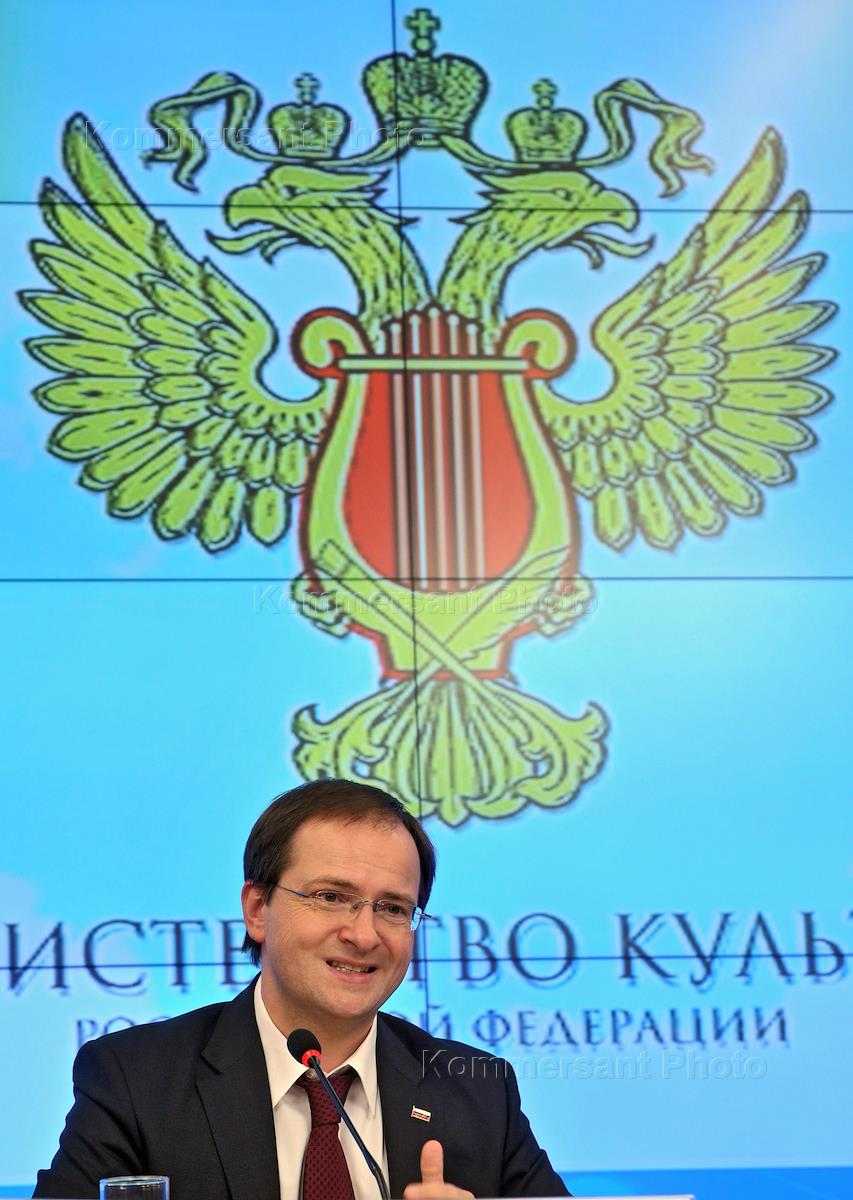 Министр культуры России Владимир Мединский во время пресс-конференции на тему "День российского кино: господдержка, обновление, развитие". Пресс-конференция прошла в РИА "Новости".