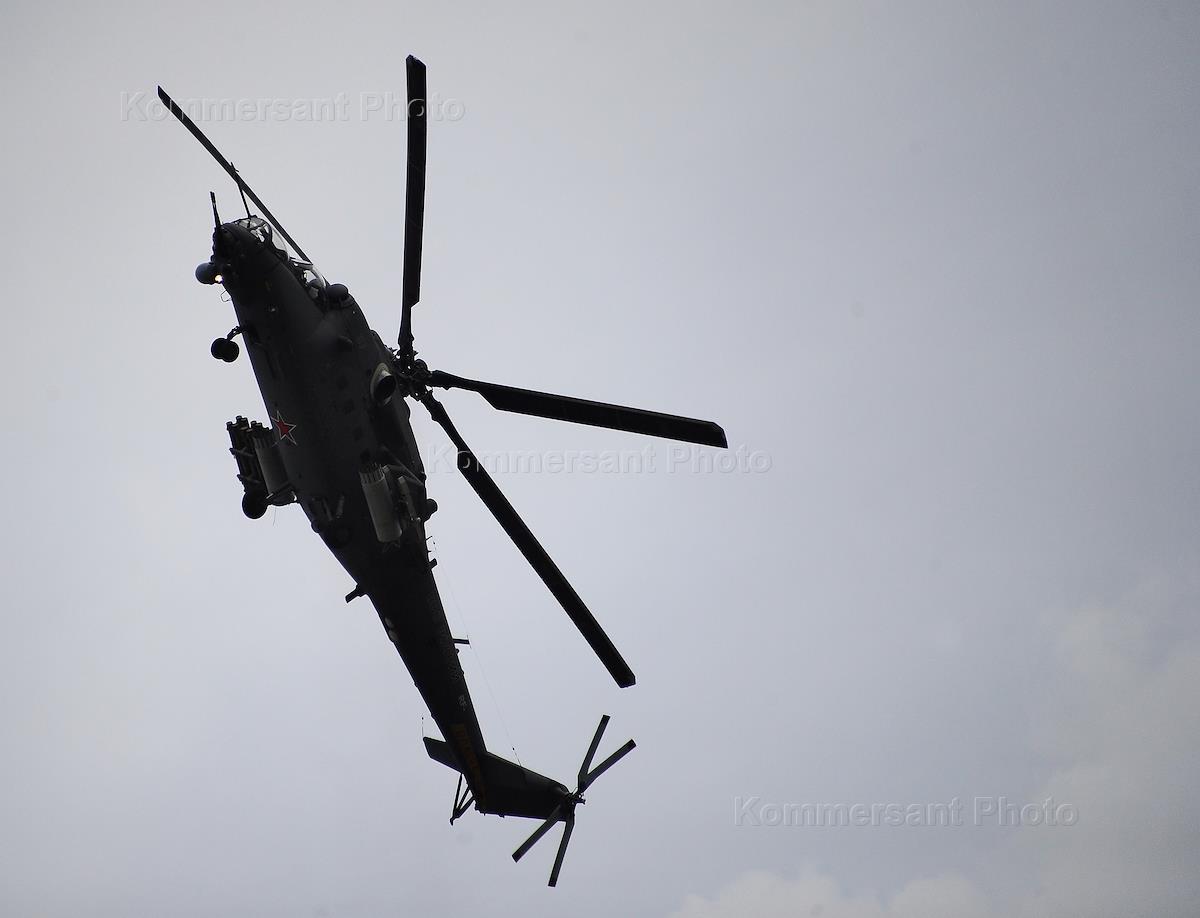 XI International Aviation and Space Salon "MAKS-2013". The Mi-35 during a demonstration flight.
