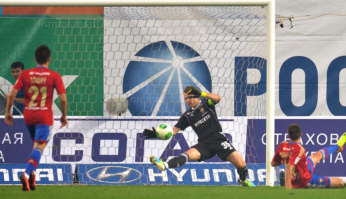 SOGAZ - Russian football championship. Season 2013/2014. 7th round. The match between CSKA (Moscow) and "Amkar" (Perm) was held at the stadium "Arena Khimki". Match referee with a yellow card.