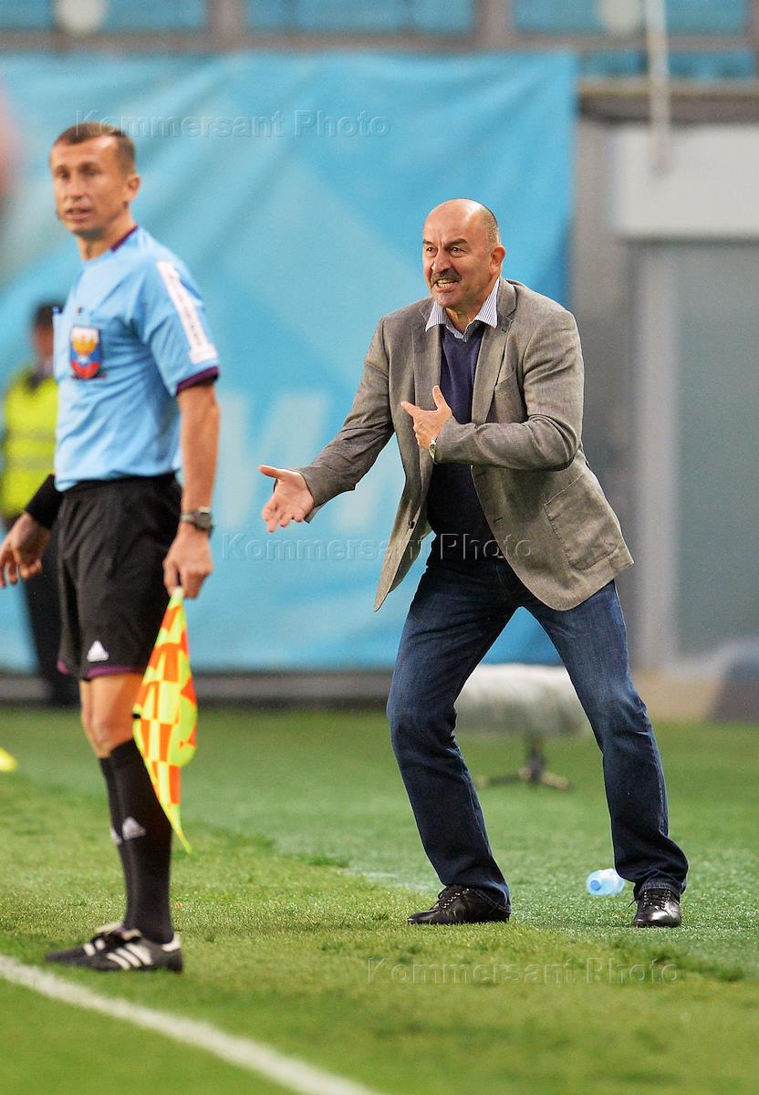 SOGAZ - Russian football championship. Season 2013/2014. 7th round. Head coach of FC "Amkar" Stanislav Cherchesov (right) during the match between CSKA (Moscow) and "Amkar" (Perm). The match was held at the stadium "Arena Khimki".