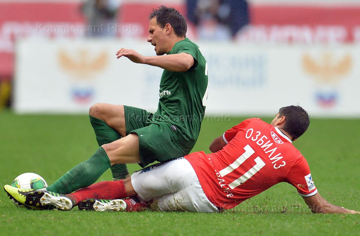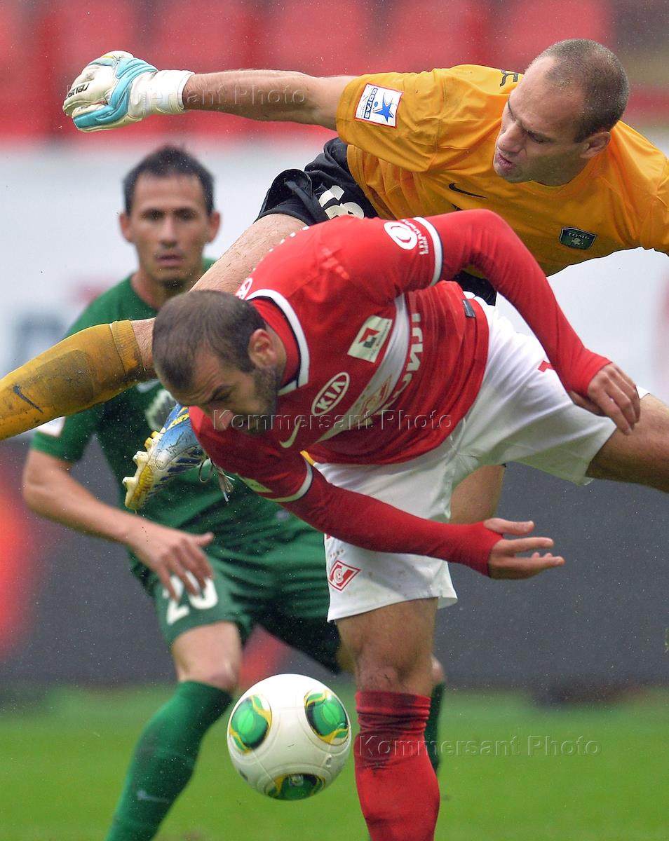 СОГАЗ - Чемпионат России по футболу. Сезон 2013/2014. Игроки Владимир Рыков (слева) и Юрий Мовсесян (справа) в матче между командами "Спартак" (Москва) и "Томь" (Томск) на стадионе "Локомотив".