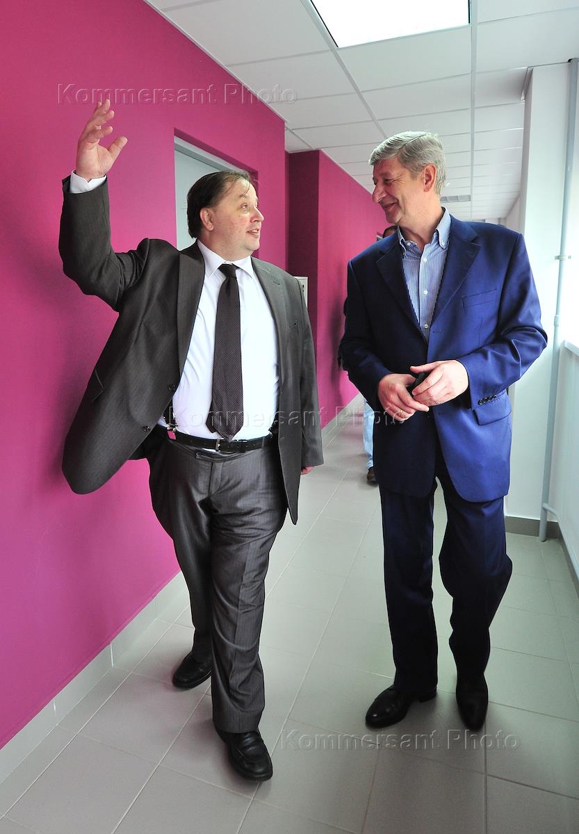 Rector of the Moscow Architectural Institute (State Academy) Dmitry Shvidkovskiy (left) and Head of Urban Policy of Moscow Sergey Levkin (right) during a press tour on objects of cultural heritage of Moscow which subject to construction, rehabilitation and restoration.